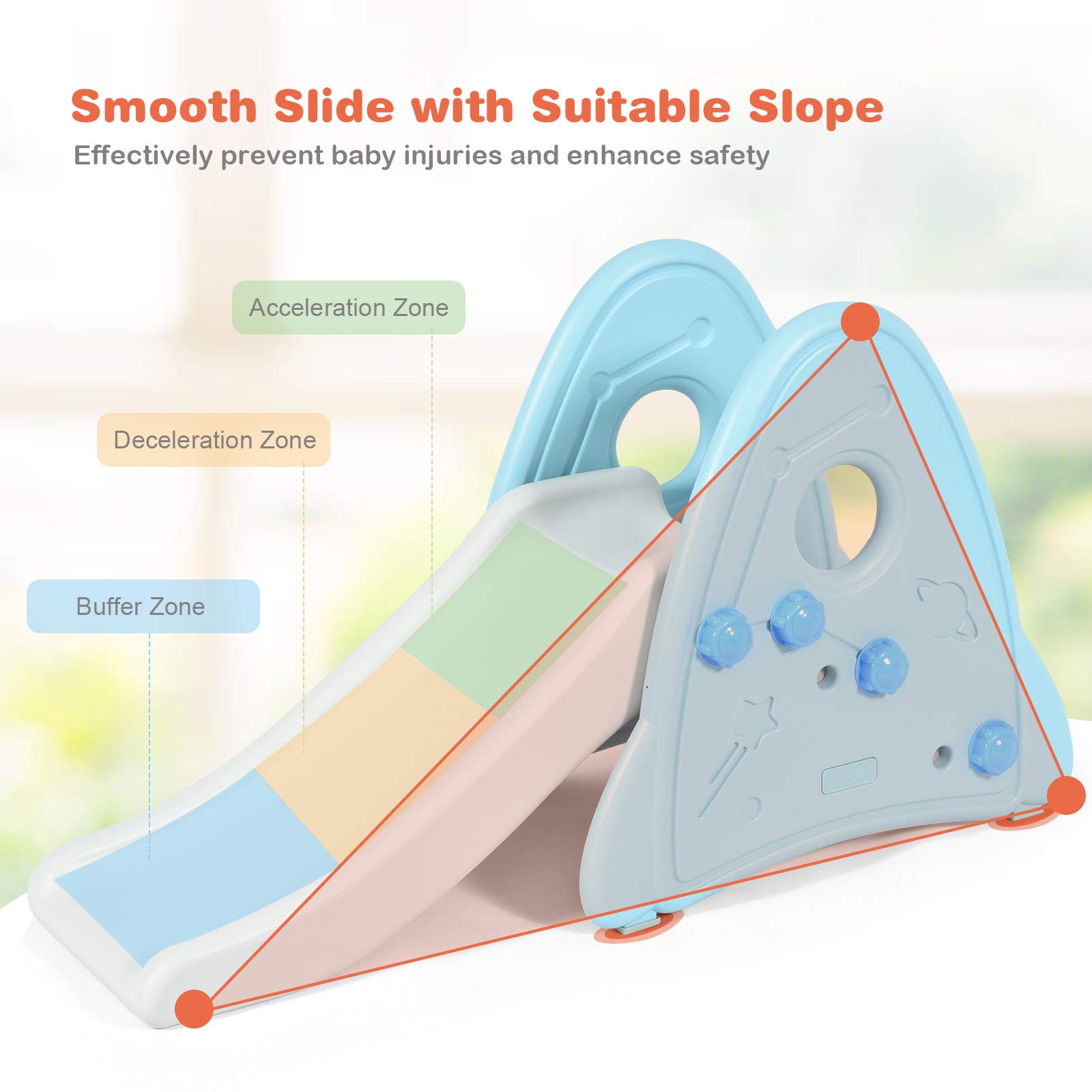 - Easy-to-Climb Steps & Smooth Slide: This children's slide features spacious pedals with anti-slip design, which provides enough space for children to climb. The slide not only has an acceleration zone and a buffer zone, but is also designed with a gentle slope, so that children can play more happily and safely.