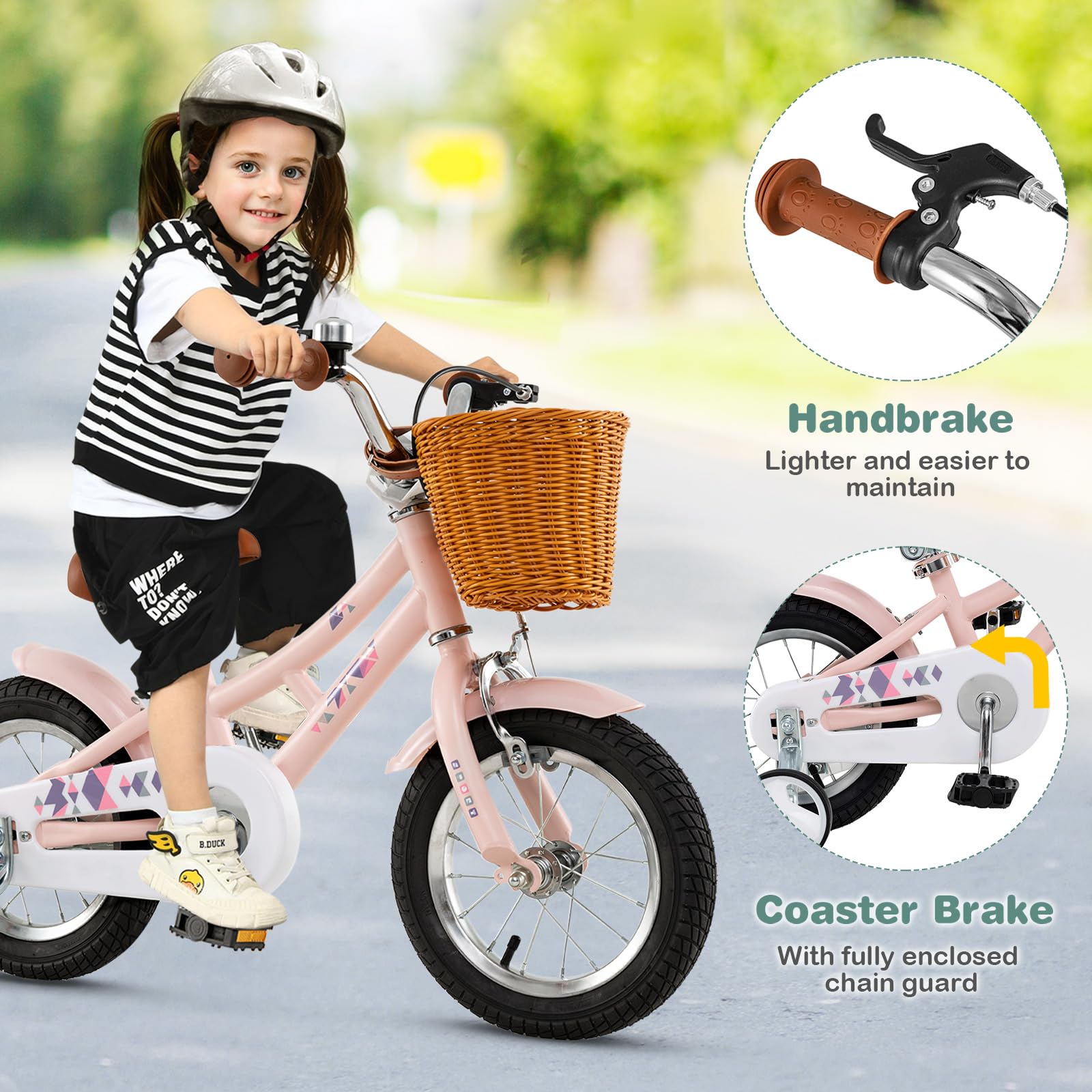 - [ Enhanced Safety Features ]: Featuring a handbrake and coaster brake, the toddler bicycle allows kids to confidently control their bike. Moreover, the fully enclosed chain guard and reflectors provide added safety while riding. The bike complies with ASTM and CPSIA standards, ensuring it is a reliable choice for parents' peace of mind.