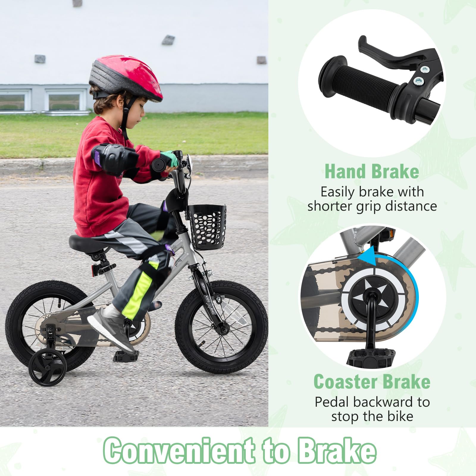 BABY JOY Starry Kids Bike, 12 14 16 18 Inch Bicycle with Training Wheels, Storage Basket, Adjustable Handlebar & Seat, Handbrake & Coaster Brake, Girls Boys Bike